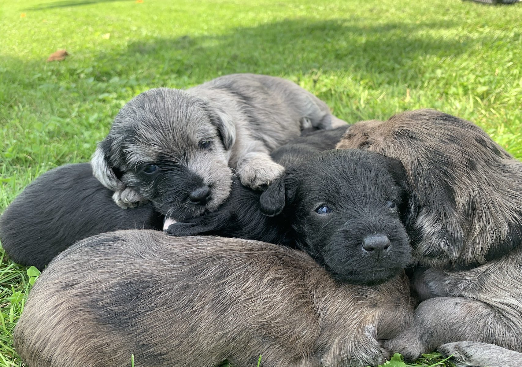 There are many varying sizes in both breeds, and thus different possible combinations that could happen. Here at Misty Vale, we have a Standard Schnauzer paired with a Miniature Poodle, resulting in a mid-sized (approx. 12–25 lbs) bundle of hypoallergenic cuteness who isn’t too big but isn’t too delicate, making them an ideal size for a family pet. And the personality of these babies makes them all the more perfect!